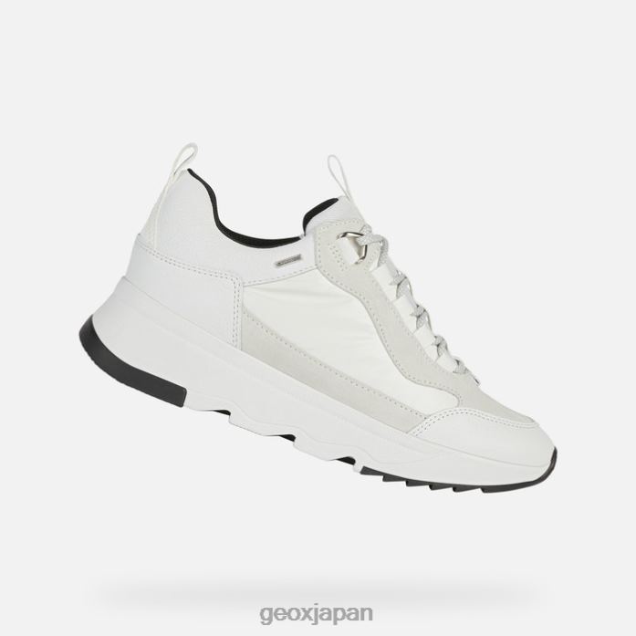 ランニング シューズのデザインと都会的なエッジを備えた女性用防水スニーカー。オフホワイトのスエードのディテールを施したホワイトのタンブルレザーで作られたファレナ Abx は、洗練されたモダンなシルエットとトレンドの外観が特徴です。通気性とクッション性があり、雨天でも快適な履き心地を提供します。